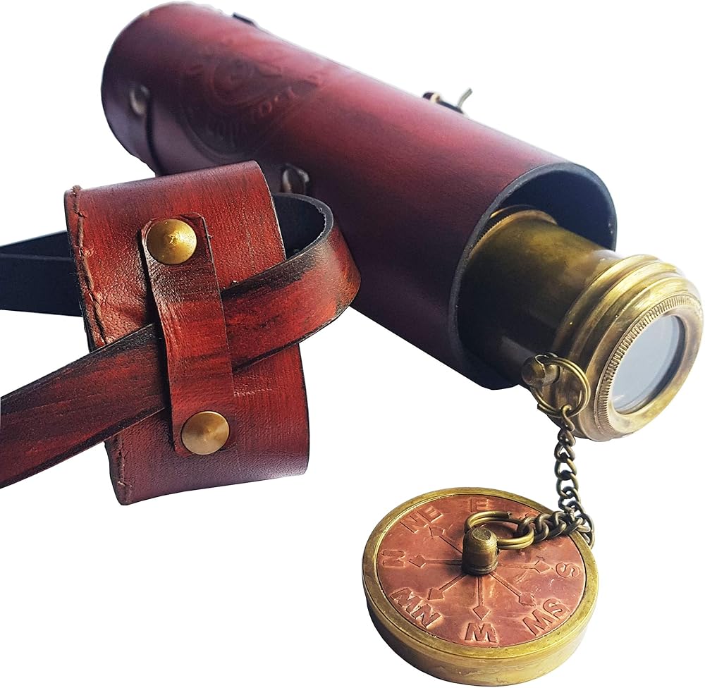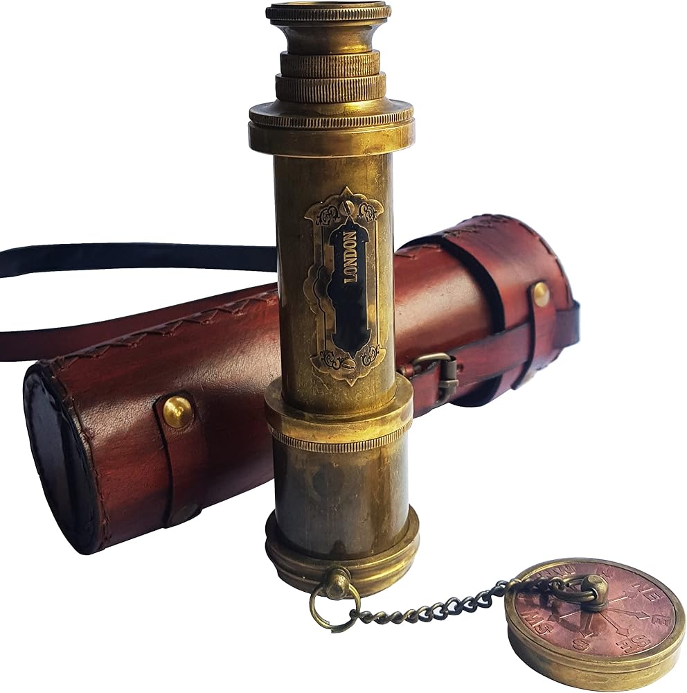 Brass Nautical - Functional Telescope | Brass Made | Glass Optics and High Magnfication | Kid's Telescope | Camouflage Finish | 18in Long | 1 Pc in Leather Bag | Handheld Antique Style | Spyglass