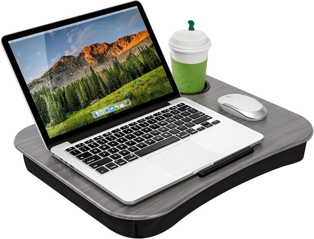 Whether you're starting your day with a cup of coffee or enjoying a soda while you watch a movie, the LapGear Cup Holder Lap Desk is for you. You can have a portable workstation and your favorite beverage. The Cup Holder Lap Desk provides some extra security for your drink while you use your computer, write in your journal, or attend a virtual meeting.
