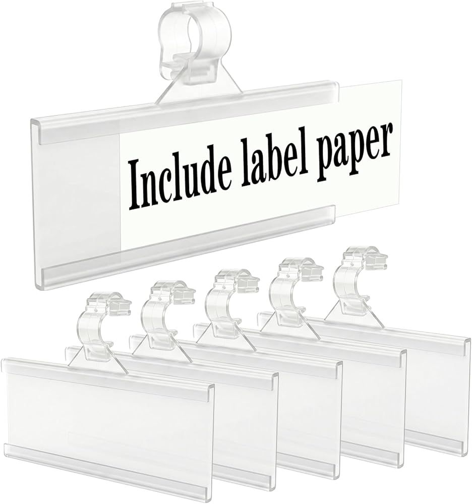 PREMIUM MATERIAL: Plastic wire shelf label holders are made of high quality plastic, sturdy and long lasting, and the grooves on the edges allow the inserts paper to slide easily without falling off.