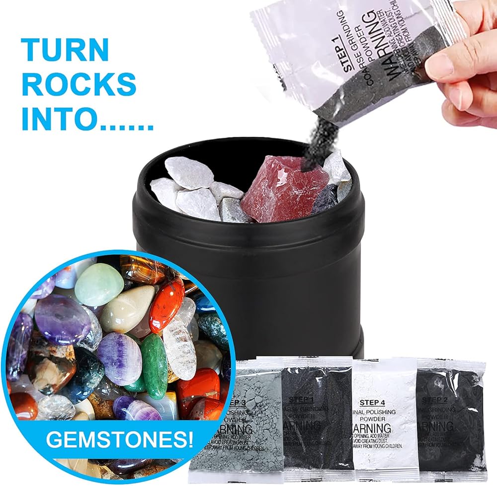 Hersance Rock Tumbler Kit, Professional Rock Polisher for Kids & Adults, Durable Noise-Reduced Barrel, Rocks, 4 Polishing Grits, Rock Polisher Great Science Kit for Boys and Girls