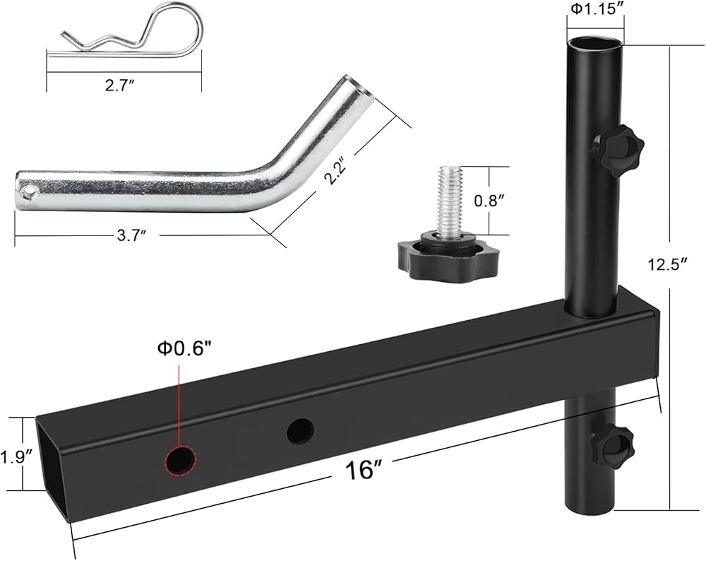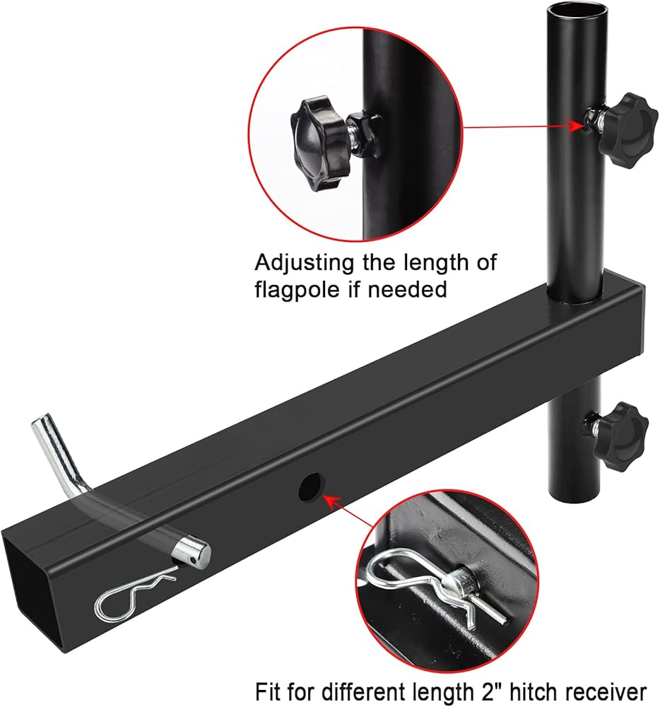 Good Compatibility: Compatible with Jeep, SUV, RV, Pickup, Truck, Camper, Trailer, etc. Universal fitment for any vehilcle with standard 2" hitch receiver. It widely suits to all poles with diameter of 0.35" to 1.15".