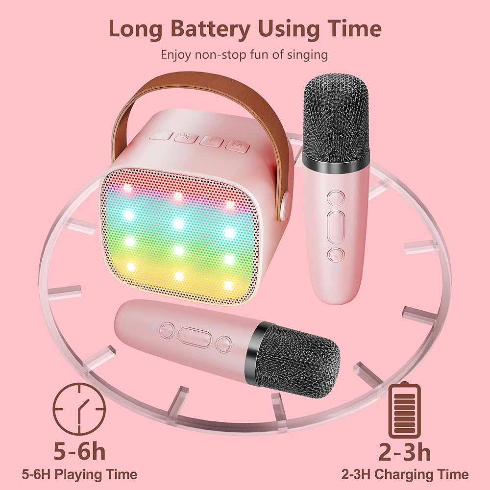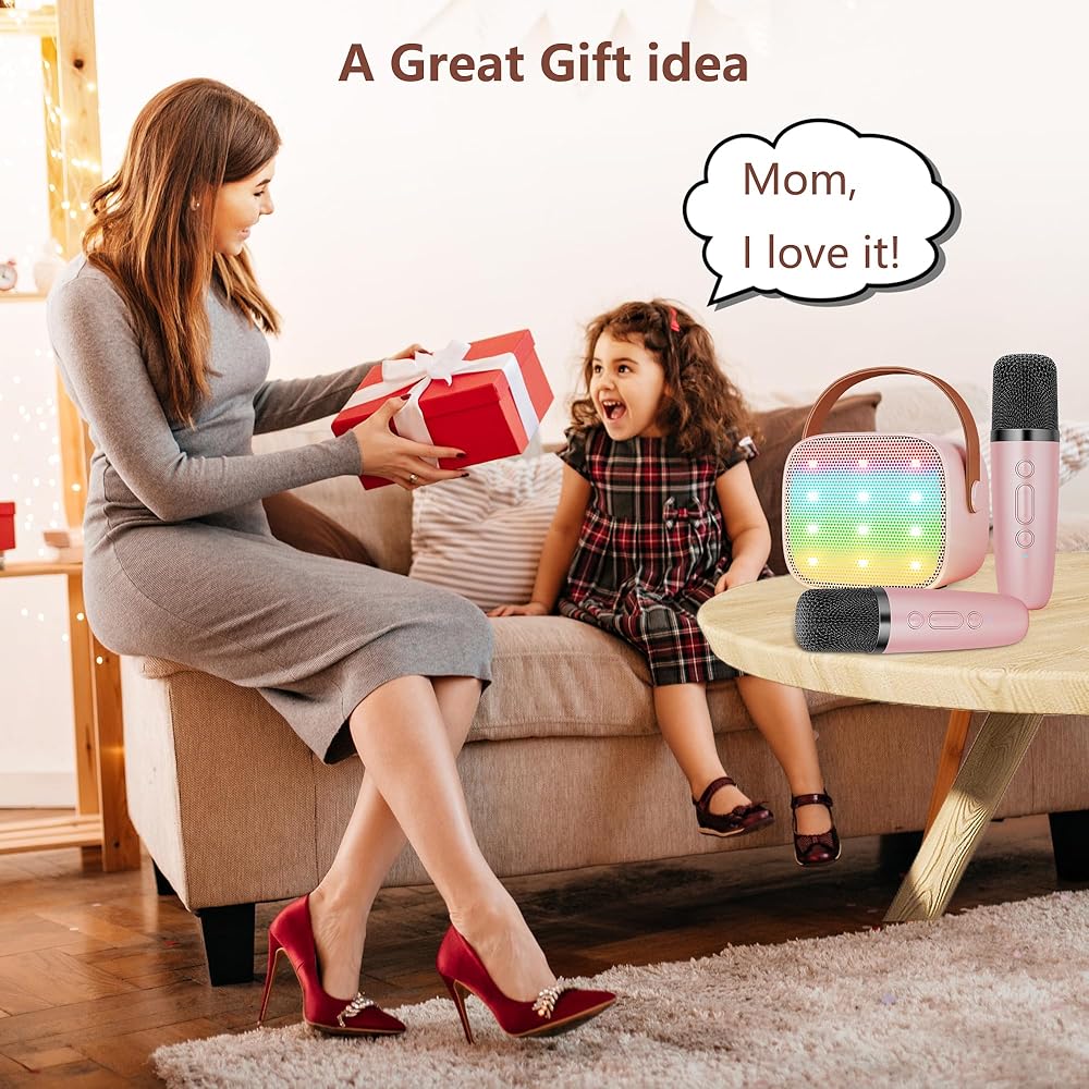 IROO Mini Karaoke Machine for Kids with 2 Wireless Microphones, Portable Karaoke Machine with Bluetooth Microphone, Kids Microphones Toys Birthday Gifts for Girls 4, 5, 6, 7, 8+ Years Old(Pinkcolor)