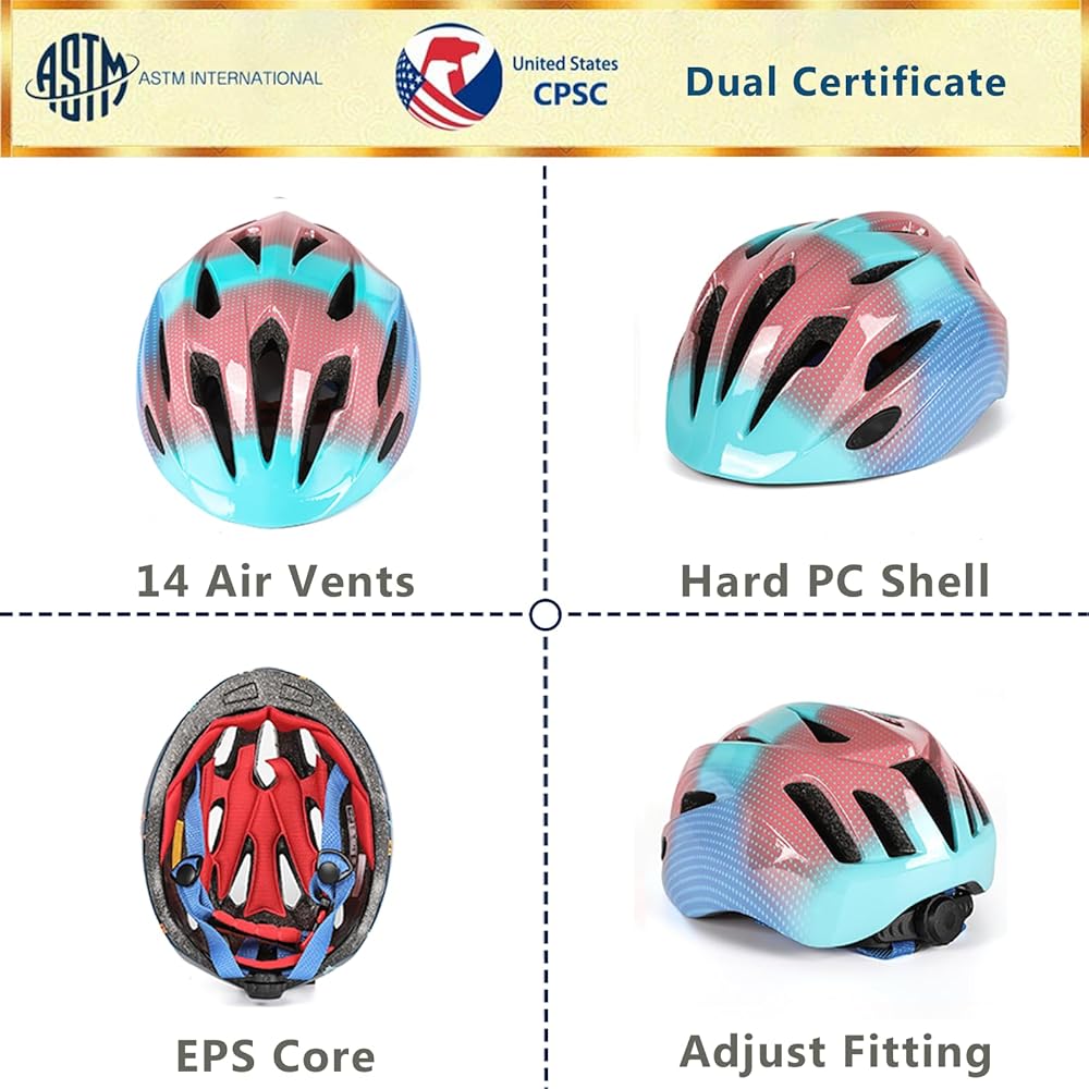 SAFETY KIDS BIKE HELMET - Safety always comes first. All complies with U.S. Dual safety standard for bicycle helmets. Lightweight kids bike helmet provides maximum ventilation for hot summer rides.
