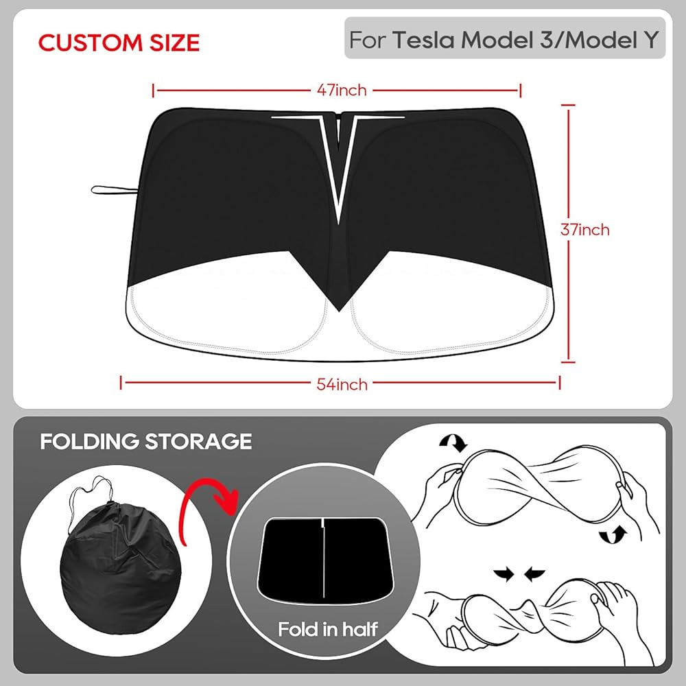 🚗 Customized for Tesla Model 3 Y> Full size filled windshield for more comprehensive shade. It can reduce a lot of heat and save the car range.