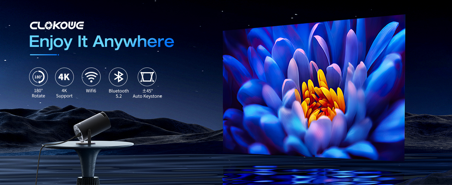 CLOKOWE Mini Projector, FHD 1080P Supported, Portable Outdoor Movie Projector with WiFi and Bluetooth, Compatible with TV Stick/Windows/iOS/Android/HDMI/USB