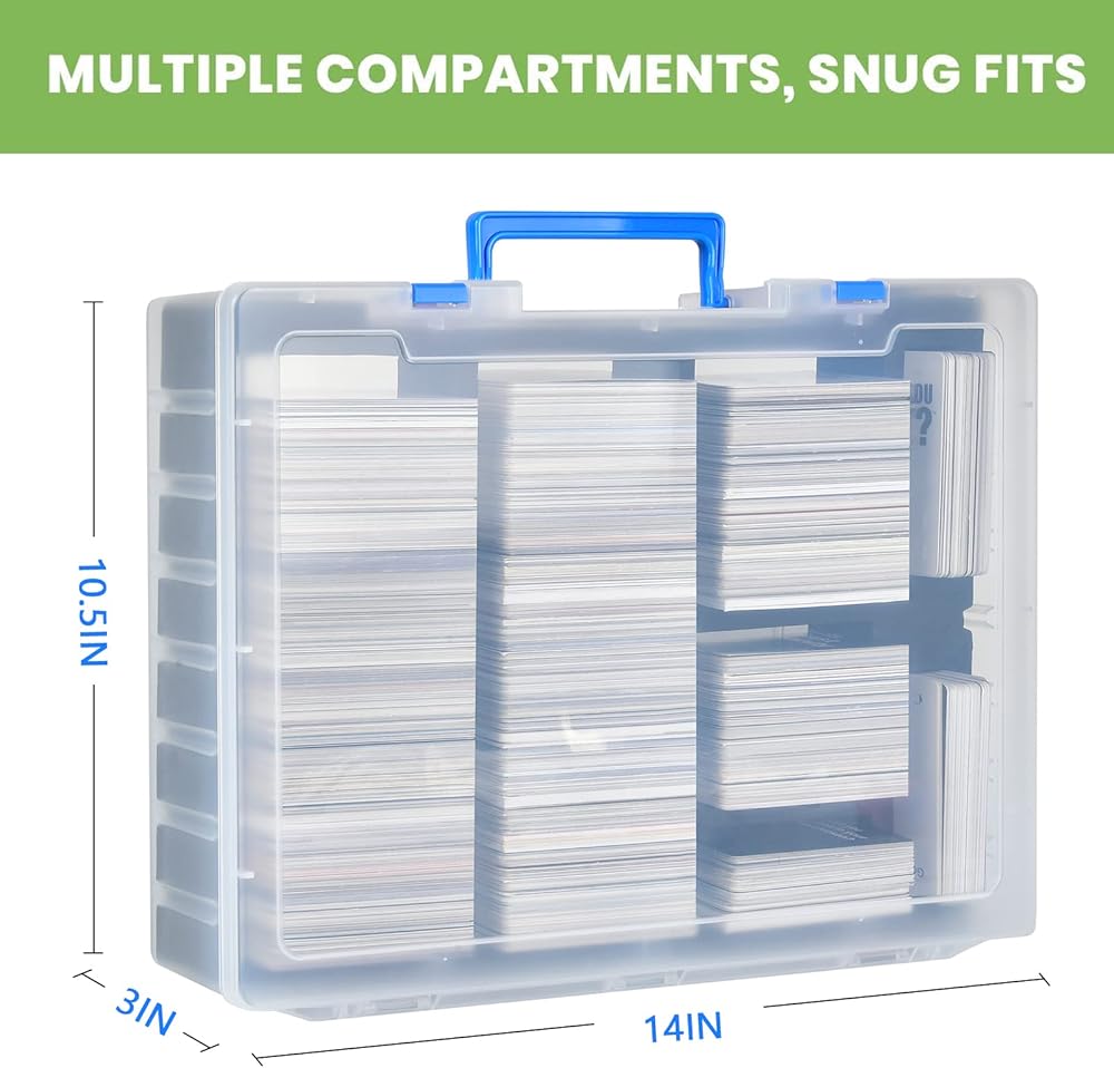 2200+ SPORTS CARD ORGANIZER DECK BOX EXCELLENT COMPATIBLE FOR ORGANIZING CAH MTG CARDS - CAH (including red, blue and green box), for Topps baseball cards, for what do you meme?, for pokemon, for magic the gathering (mtg), for yugioh, for munchkins, for joking hazard, for drunk stoned or stupid, for superfight, for disturbed friends, and many more! CASE ONLY, NO CONTAINS ANY CARDS