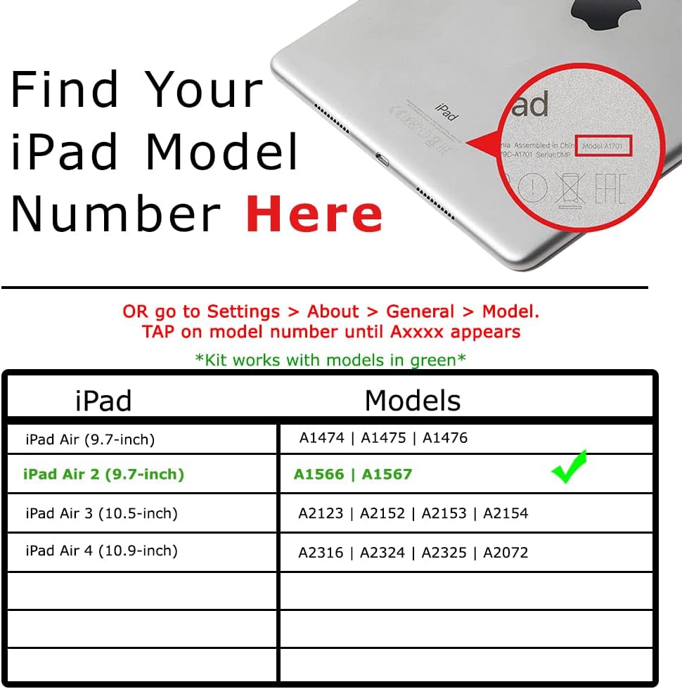 [COMPATIBILITY] Compatible with iPad Air 2 2nd Generation (9.7-inch) models A1566 | A1567 (NOT Compatible with iPad Air 1) (Carefully check model number on back of your device) Compatible with AT&T, Sprint, Verizon, T-Mobile and all iPad carriers.