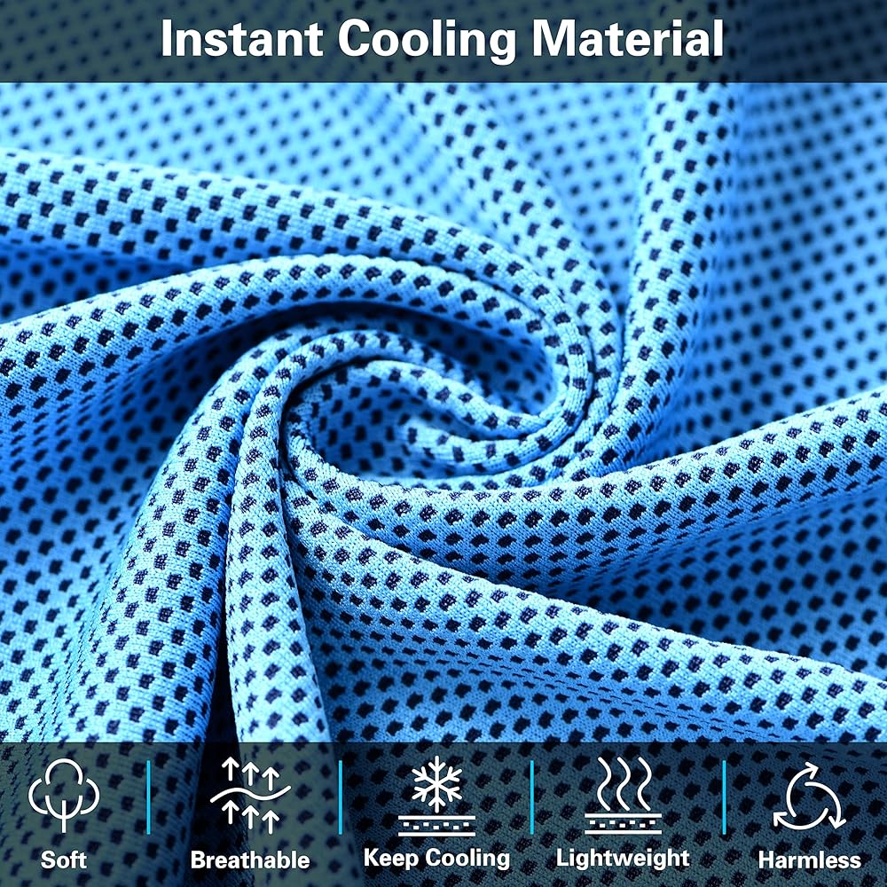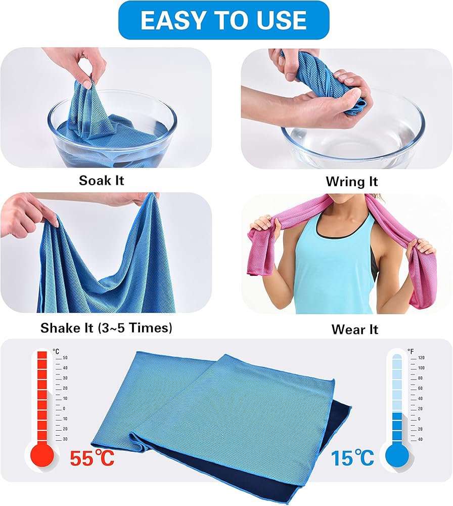 【INSTANT COOLING】Hyper-evaporative breathable mesh material makes it easy to activate the cooling towels. Just soak the cooling towels, wring it out and shake it. The unique cooling system uses the moisture in the towel to take sweat away from your skin and keep you cool.