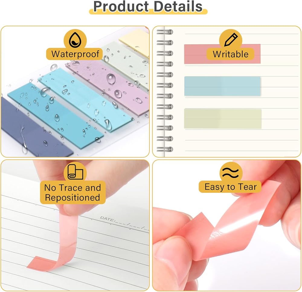 📝【Writable & Repositionable】These clear sticky notes are sticks easily, and the adhesive stays put on the sticky tab and doesn't come off on the paper. Also the book flags tabs won't damage the book when you removed and can be moved a few times without losing adhesion.