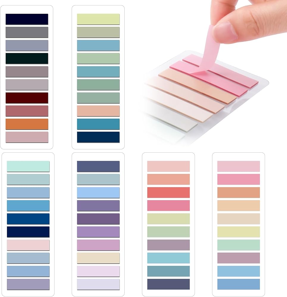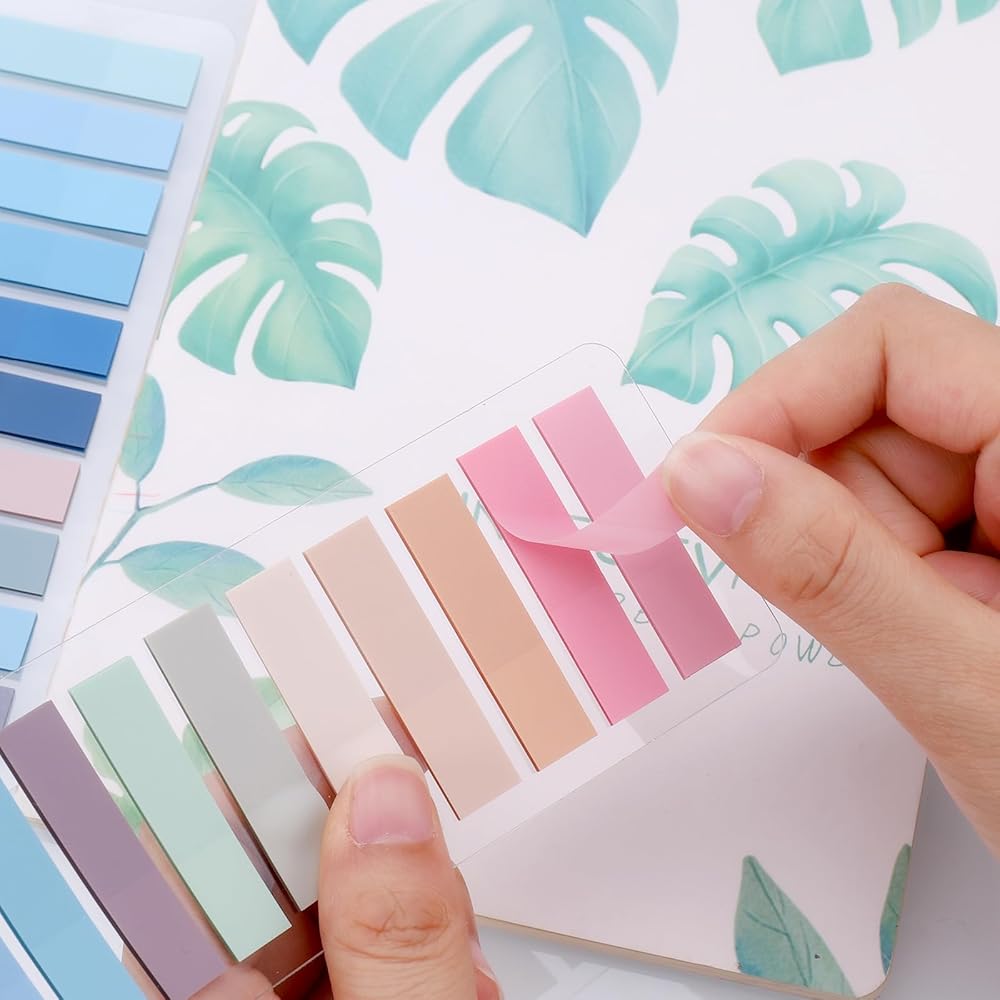 🗂️【Not Cause Damage】10 sets book markers for notebooks, 1.6*0.5 inch. These clear sticky notes are sticks easily, and the adhesive stays put on the sticky tab and doesn't come off the computer. These page markers for notebooks have special stickiness, when you tear it off, it will not hurt your books.