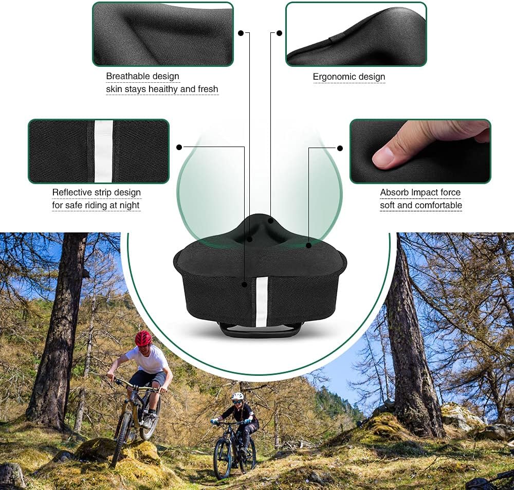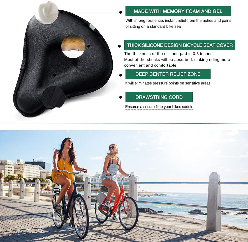 ✅Extra Soft Gel Bike Seat Cushion Cover, Gel + Memory Foam Filling