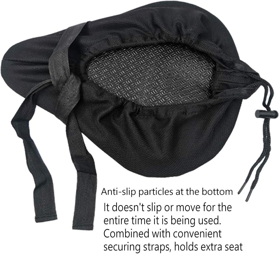 【Non-Slip Design & Easy Installation】 Anti-skid leather, draw-string and 2 extra straps can effectively prevent the bicycle seat cover from sliding. No tools needed, easy to install, just slip the bicycle seat cushion over the seat, properly tie the draw-string and straps and keep our exercise bike seat cover in place.