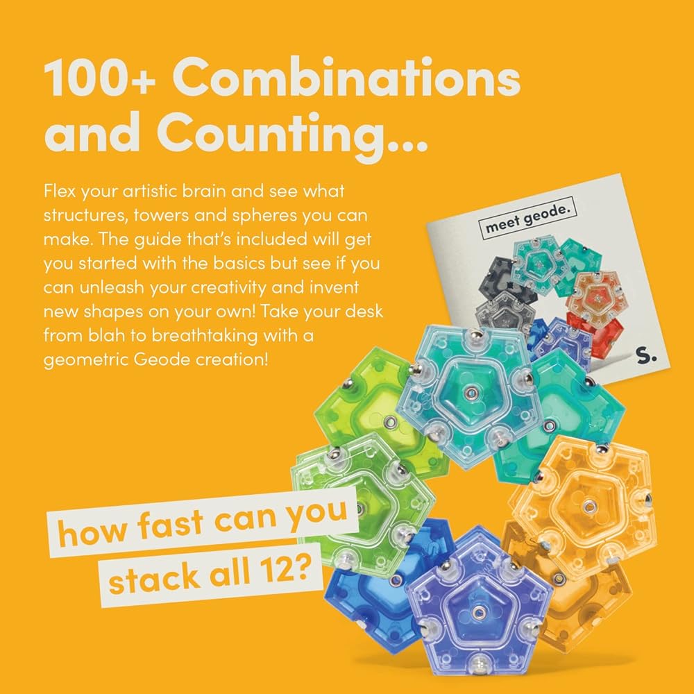 FUN FRUSTRATION FREE FIDGET: Fidget to find your favorite configuration! Geode pieces connect on every side so you'll always find a connection. Easy to use, harder to master - you'll be playing with these pentagons permanently! Way more fidgeting fun than a fidget spinner, trust us!