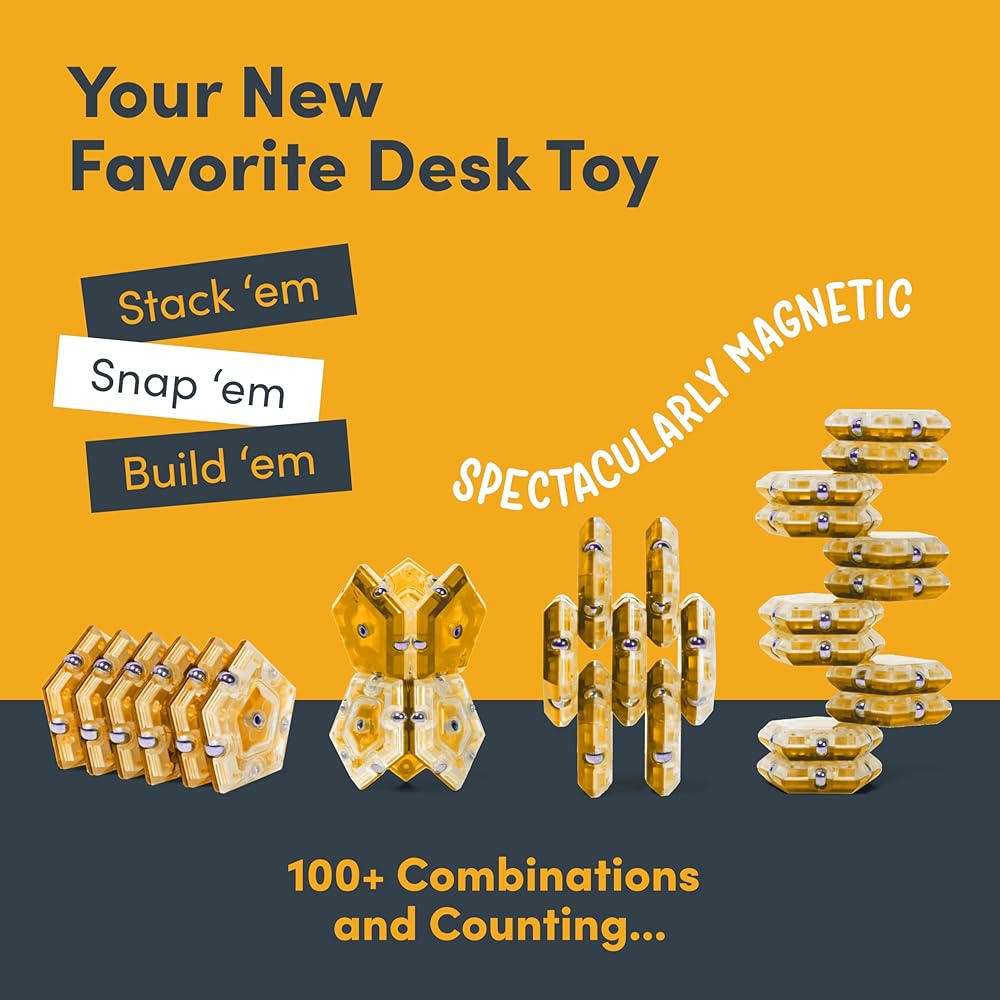 STACKABLE, SHAKEABLE, SNAPPABLE, BUILDABLE: Use magnetic magic to build gravity defying structures then use your hand as a hammer to mess up your masterpiece. Have a jumble of pieces? Pile them into your palms and shake vigorously. They'll magically self-align every time!