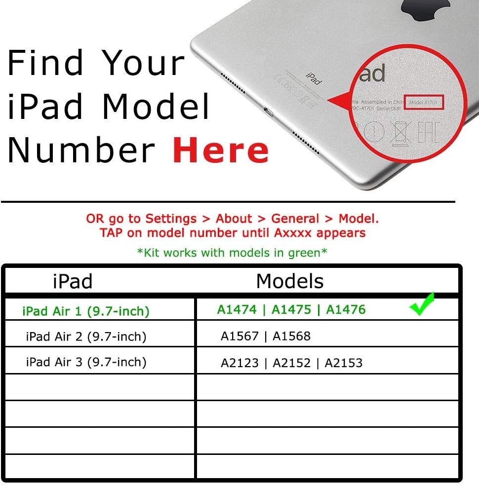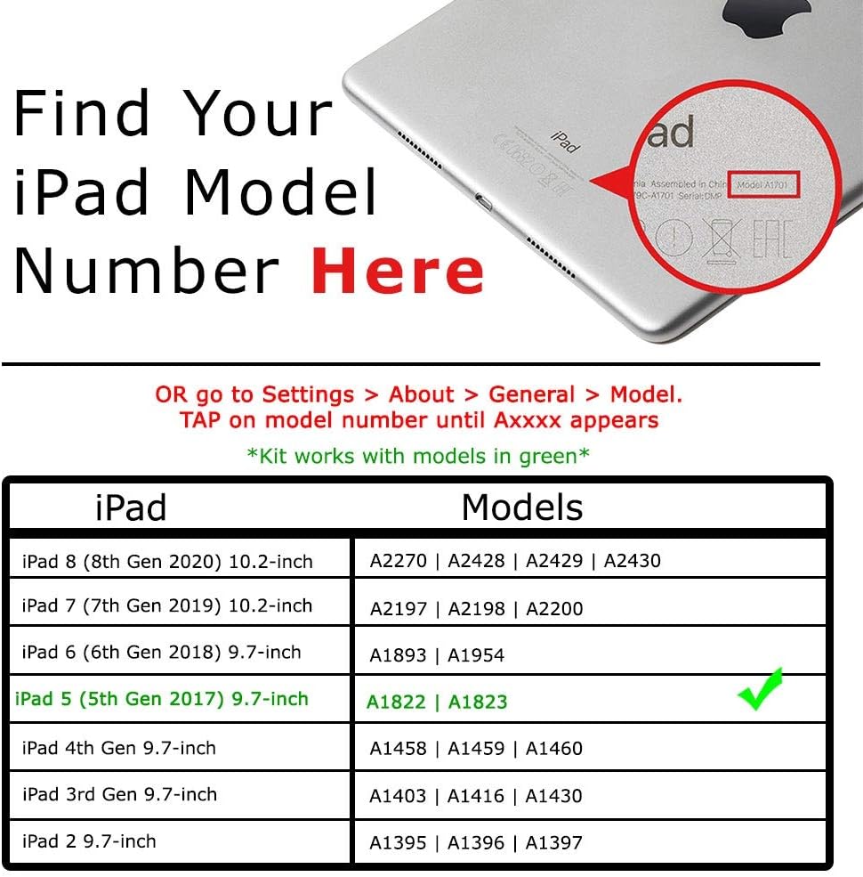 [COMPATIBILITY] Compatible only with (9.7-inch) 5th Gen 2017 models A1822 | A1823 and iPad Air A1474 | A1475 | A1476) (Carefully check model number on back of device)