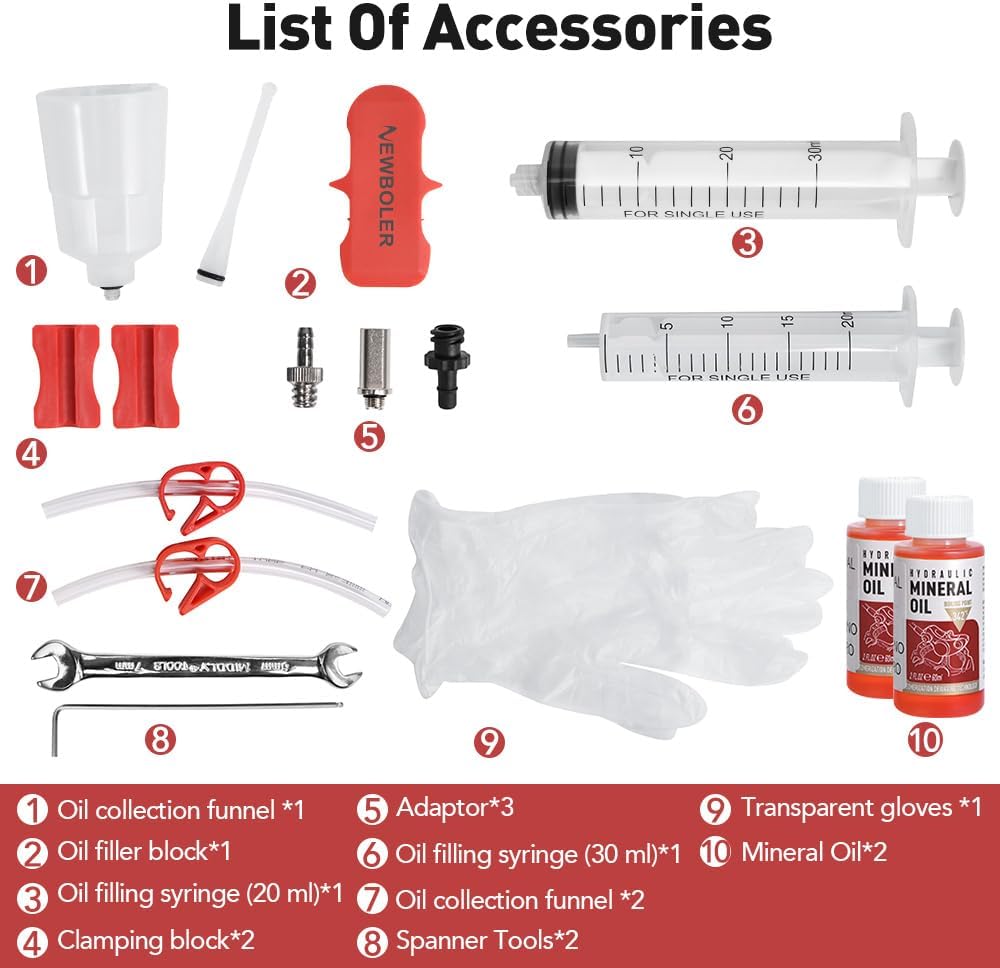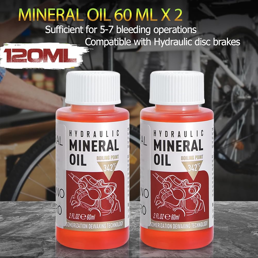NEWBOLER Brake Bleed Kit for Shimano with 2 Metal Connectors, 2 bottles of 60ml mineral oil is enough for multiple bleed process, excellent brakes for more confident riding