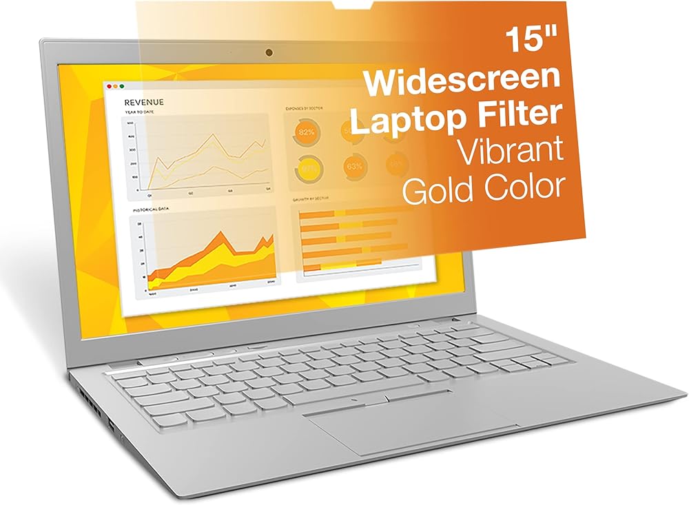 3M Gold Privacy Filter for MacBook Pro 15 Inch (2016 Model or Newer) with Comply Attachment System for Flip-Share, Reversible Gold/Black, Reduces Blue Light, Screen Protection (GFNAP007)