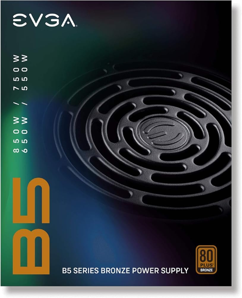 Introducing the EVGA B5 power supplies, the latest 80PLUS Certified Bronze power supplies to carry on the EVGA tradition of reliability, performance, and affordability. The B5 power supplies start with the most important standard for reliability - 100% Japanese Capacitors. Next, the B5 power supplies provide maximum flexibility by using a small chassis and a fully modular design. The ultra-quiet 135mm Fluid-Dynamic Bearing fan becomes silent when coupled with EVGA ECO mode to trn off the fan in medium to low loads. Last, but not least, the B5 power supplies have a full suite of protections and a 5-year limited that you've come to know and expect from EVGA.