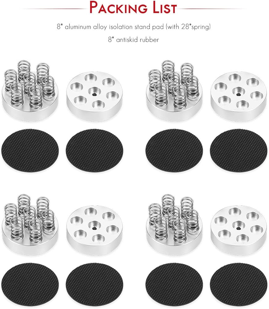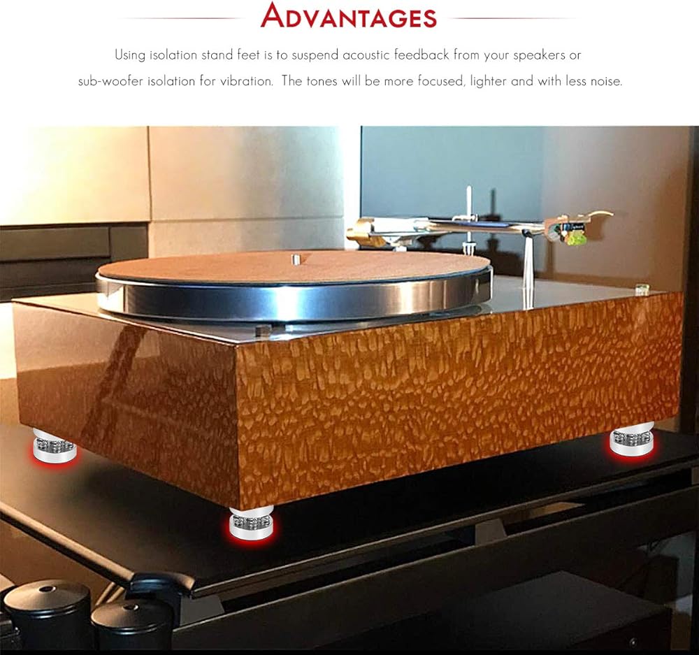 Function: Using isolation stand feet is to suspend acoustic feedback from your speakers or sub-woofer isolation for vibration. The tones will be more focused, lighter and with less noise. It can also avoid much of the vibration that may disturb downstairs.