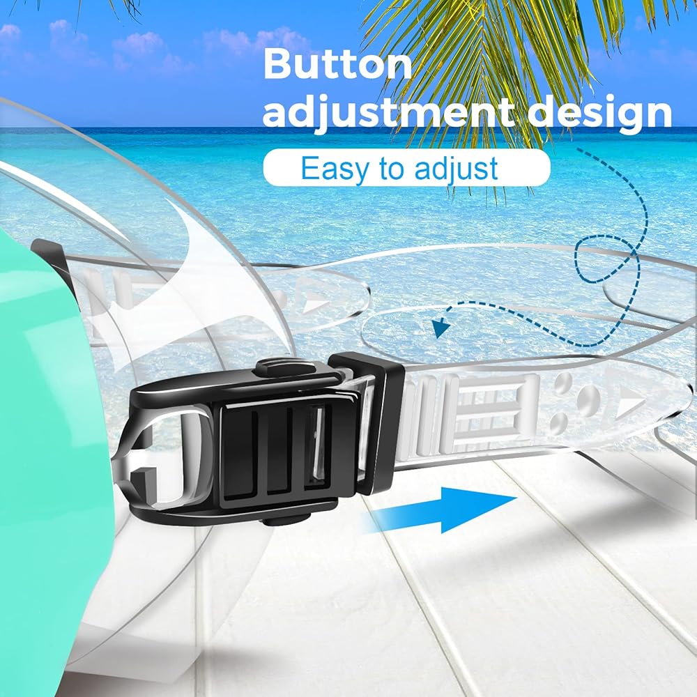 【Fit Different Face Shapes】 This swim mask is specifically designed for men/women. The push-button buckle allows for easy strap adjustments, alleviating pressure from the back of the head and ensuring a snug and secure fit for a range of face shapes and sizes.