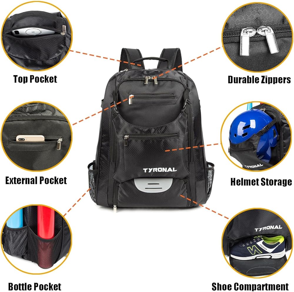 External Helmet Storage:Baseball helmets would waste a lot of backpack space. This smart external design allows your helmet to be stored on the outside of the bag, a Helmet holder that secures and protects your helmet or hat on the outside of the bag so you can fit more inside.