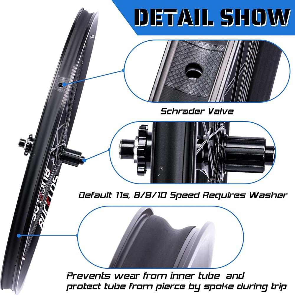 【Compatible】MTB wheelset fit 8/9/10/11 speed cassette, 1.8~3.0 size tires,easy to assemble. The inner has a double-wall rim design to absorb even the biggest jumps and drops.