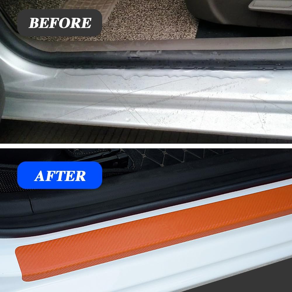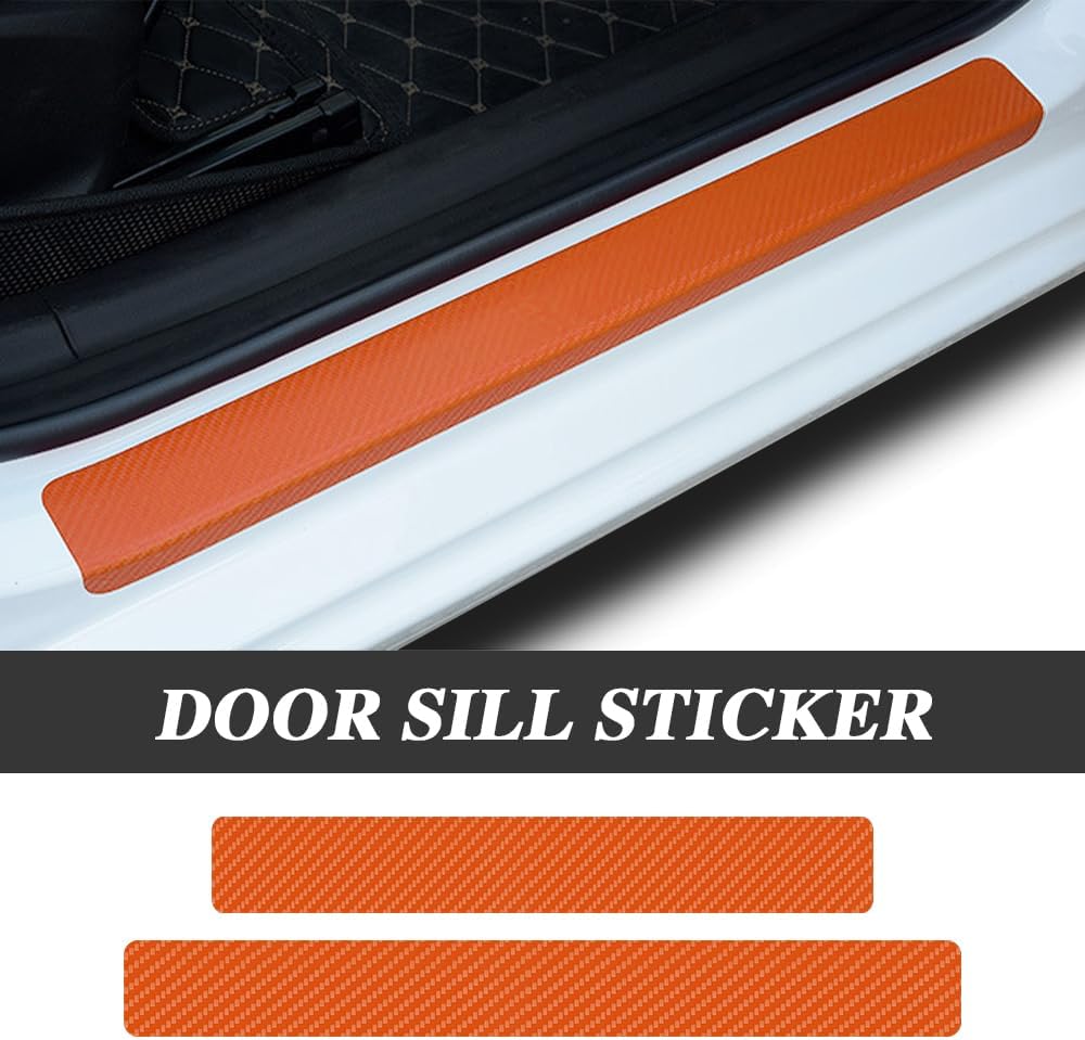 [High quality]: Car door sill scuff plate cover are usually made of carbon fiber and have high toughness, tensile strength, durable and scratch-resistant, which can effectively protect the car door frame and improve the body rigidity and impact resistance. At the same time, carbon fiber stickers also have good aesthetics and texture, which can enhance the appearance and grade of the vehicle.