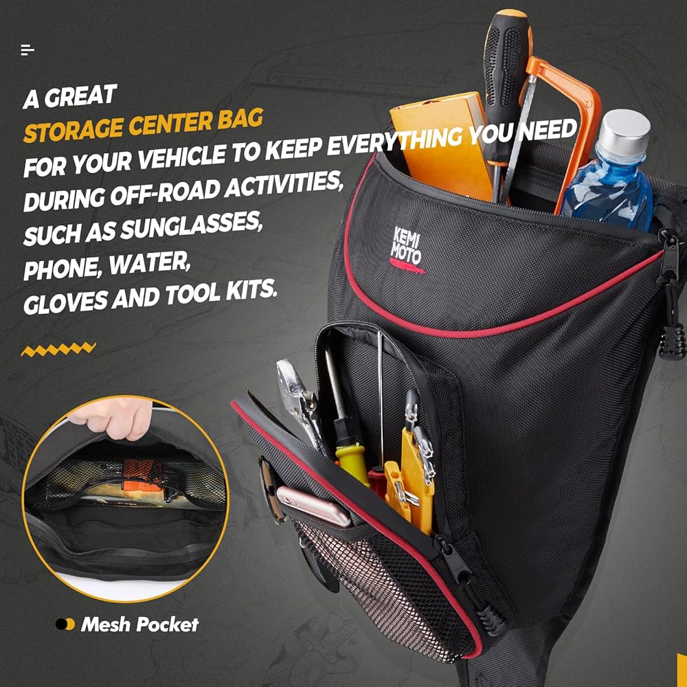 【Water-resistant & Durable】Our XP 1000 storage bag is made of high-density water-resistant 1680D fabric Oxford Cloth, which is more durable than other storage bags of 210D, 400D, and 600D. The UTV center seat bag prevents scratches, abrasion, tearing, and dust. KEMIMOTO will bring you to enjoy great fun off-road.