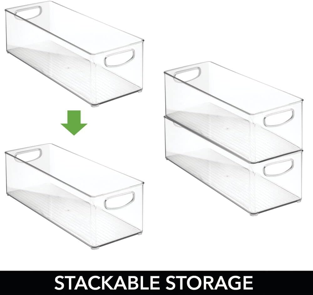 BUILT-IN HANDLES: Bins feature easy-carry handles to make it simple to transport goods from shelf to cabinet to closet; Just grab and go; These storage baskets stack too - the perfect storage and organizing solution for modern living spaces; Open tops make it easy to see what is inside and quickly grab what you need