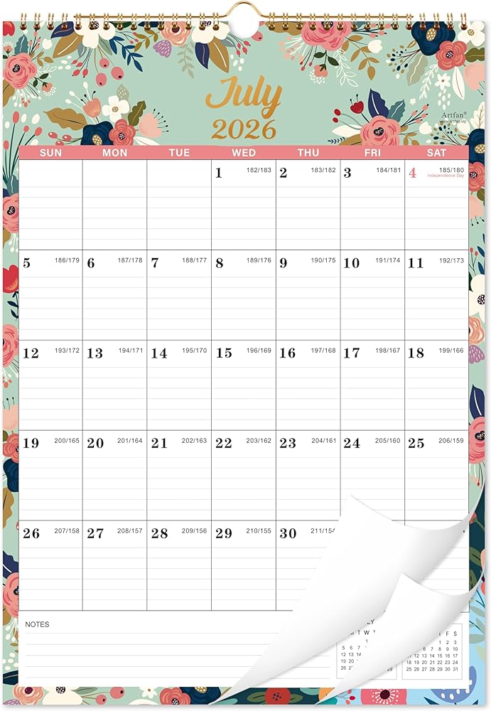 🌺 FUNCTIONAL DETAILS - Sturdy twin-wire binding for turning pages easily + Federal holidays highlighted in color + Hanging hook for hanging calendar flexibly + Ruled daily blocks (1.6" x 1.9") with large writing space for daily scheduling.
