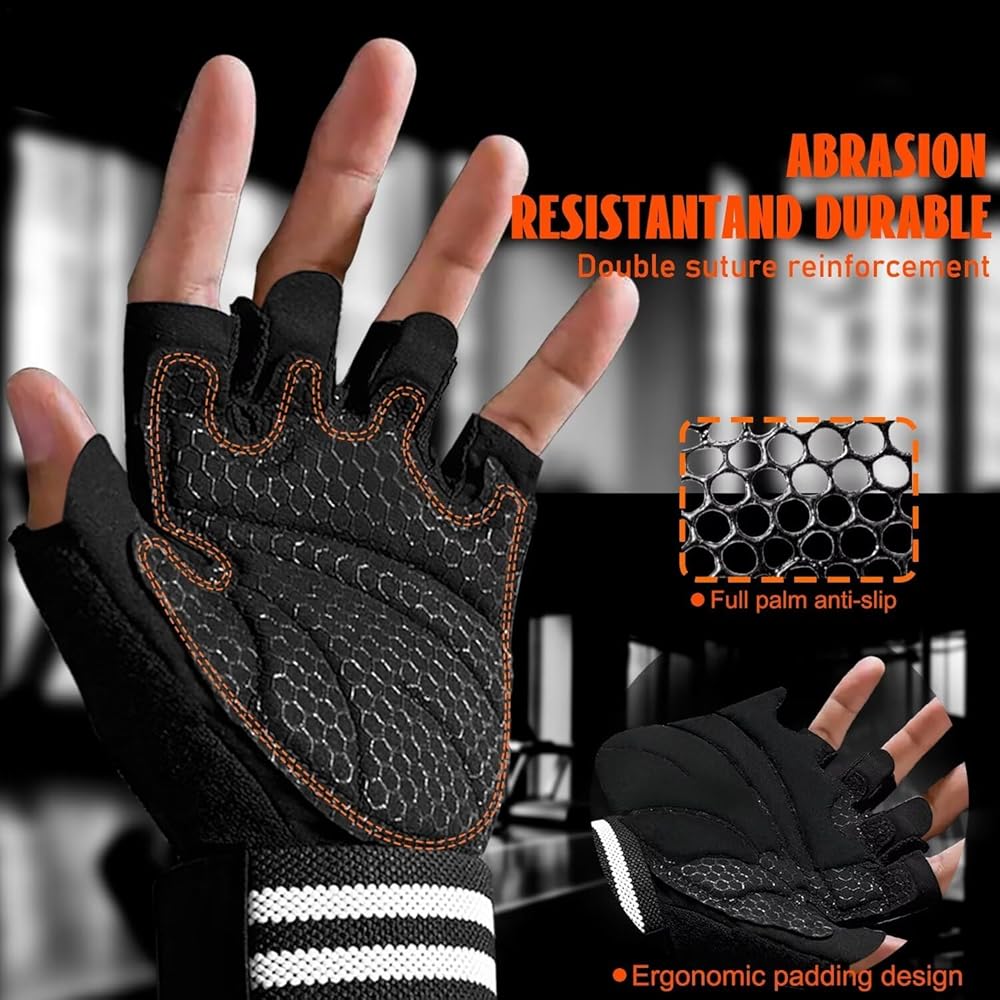 Workout Gloves with Wrist Support & Palm Damping, for Palm and Wrist Protection During Weight Lifting, Pull-Ups and Strength Training in The Gym, Suitable for Men and Women