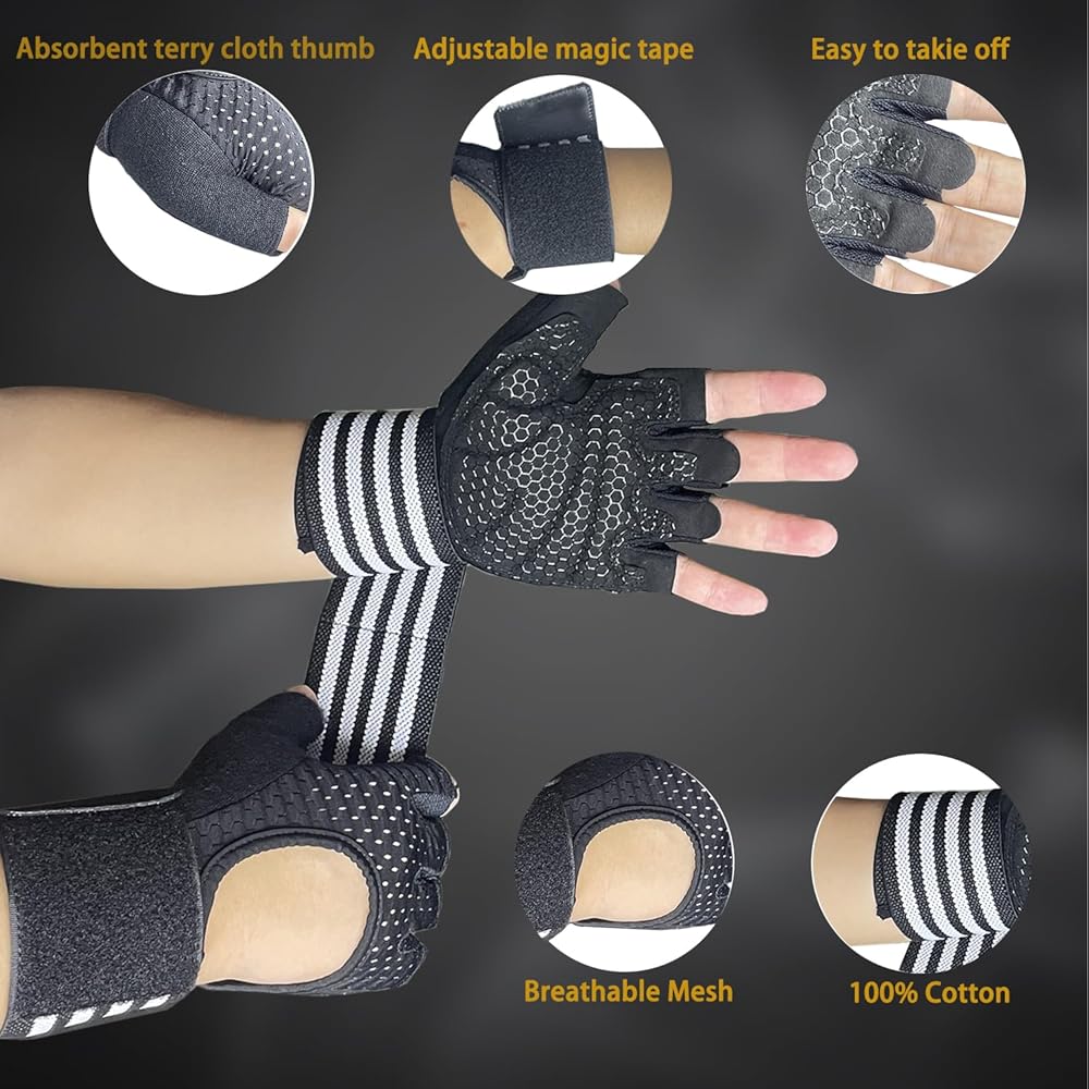 NEW STRUCTURE: Weightlifting gloves with wrist straps the wrist connected to the back of the hand opening design abandons the traditional one-piece fixed structure behind the wrist, and finger lengthening design, Easy to wear for both men and women, thumb high-quality large area towelling cloth, you can always wipe off the sweat, to maintain the best condition.