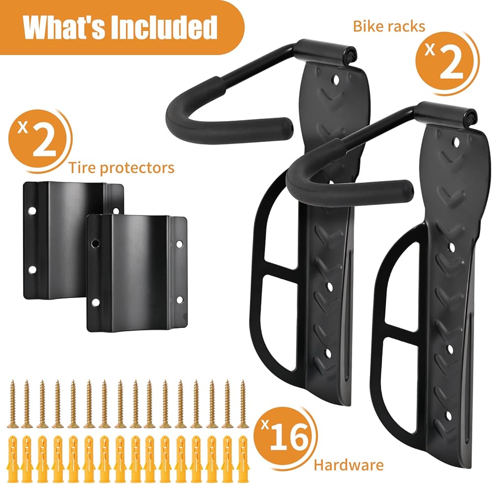PACKAGE INCLUDES - Bike Rack x 4, tire tray x 4, Screws x 32, Anchor X 32 Note: The bike storage system require to install on the stud, masonry or concrete wall, do not mount on plasterboard unless there is a stud behind it.