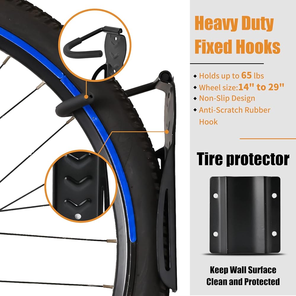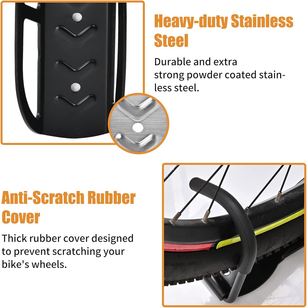 ✓【Safety】 – Wall bike rack features hook with rubber coating to protect your bicycle from scratches, and safety locking mechanism prevents accidental release.