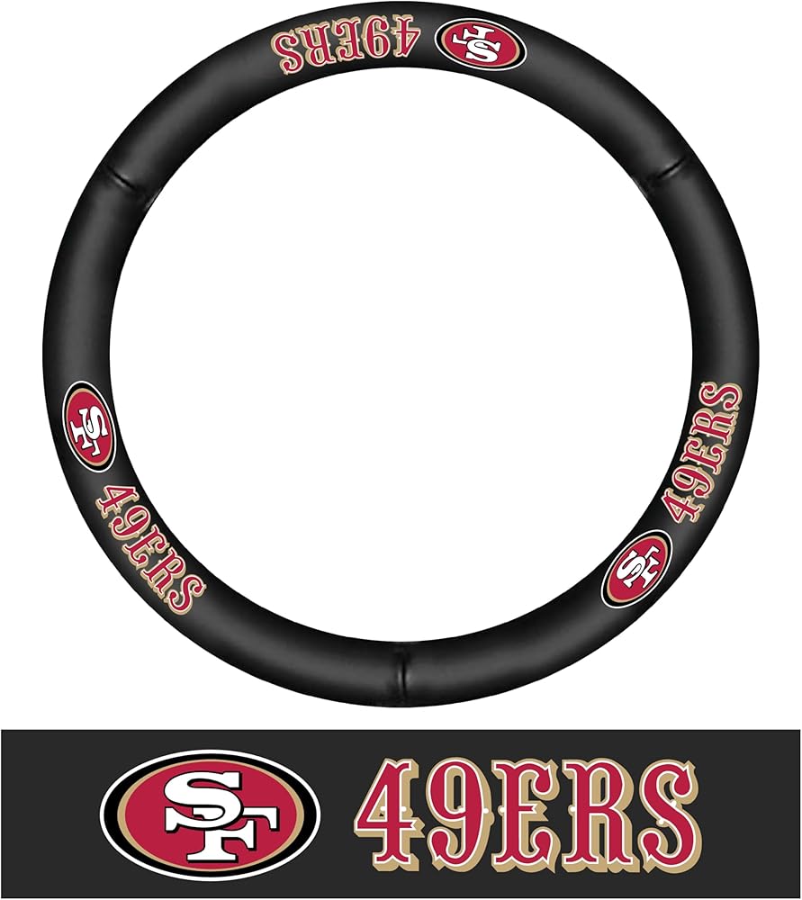 FANMATS 40474 NFL - San Francisco 49ers Genuine Leather Steering Wheel Cover | Black 15"x15"