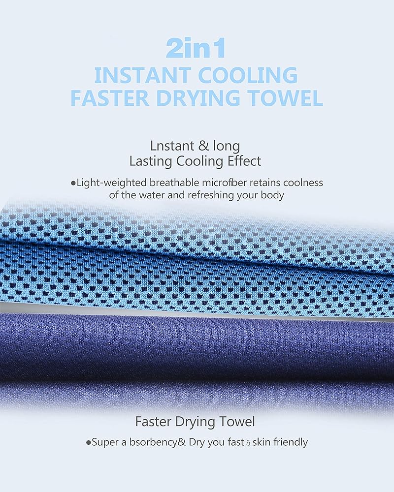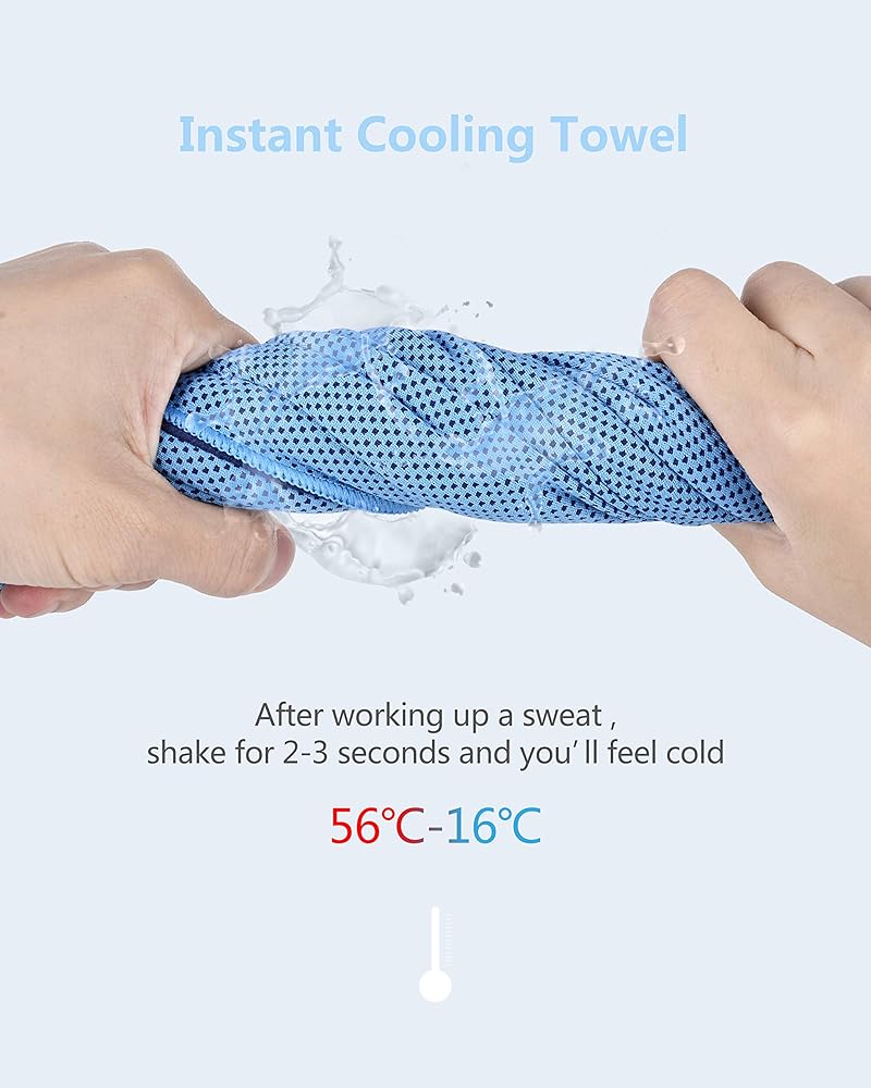 EASY TO USE:Super Cooling Towels for Sports, Fitness, Gym & Yoga, gadget for sunstroke prevention and cooling relief in summer.Soak for 1 minute, wring out excess water, snap it few times and is ready to use.