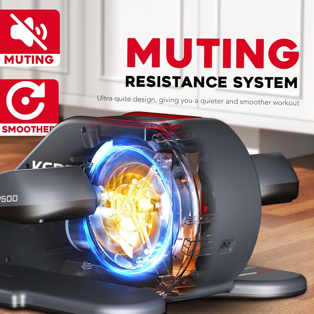 Mute Flywheel System - The mini elliptical machine features a unique silent flywheel device with a silent wheel running at the bottom, Let you to enjoy quiet and smooth movement away from the noise during training.