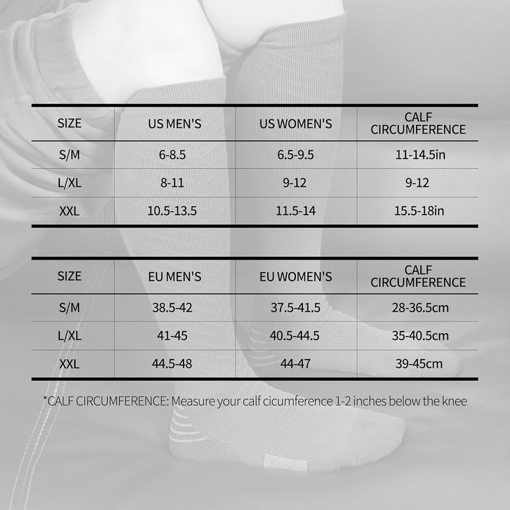 Versatile Support for Various Activities: Designed for a wide range of activities, including athletic pursuits, running, fitness workouts, cycling, yoga, and daily wear, these over the calf compression socks for men women offer versatile support, comfortable even when sitting for long periods of time. Experience the benefits of compression during diverse activities, ensuring comfort and performance in every step.