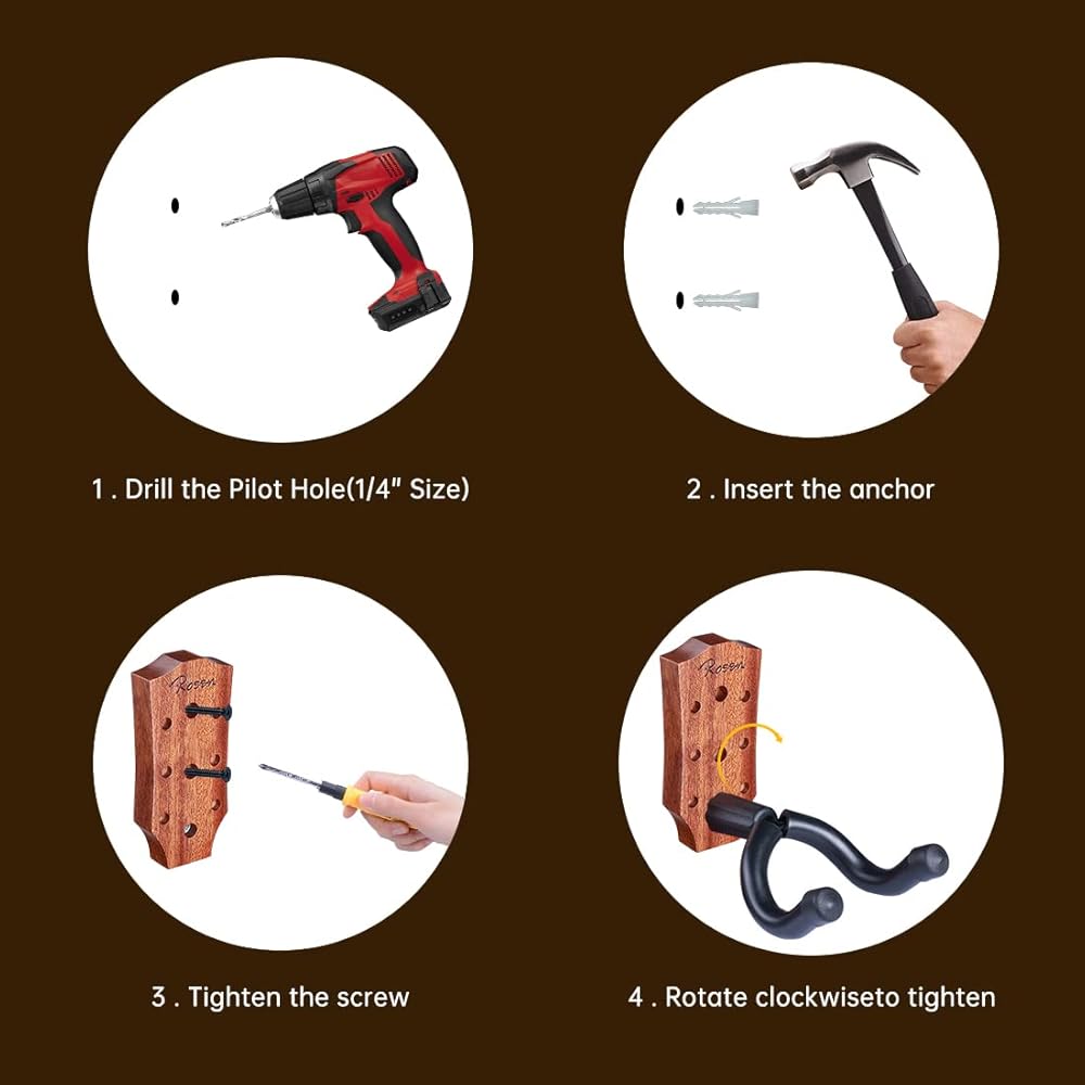 Easy to Install: Assemble in no time! Every package are come with long screws and robust drywall anchors to securely mount to various wall types. Installation can be done in just 4 steps. Rosen guitar wall mount is the ideal gifts for guitar players and the person who like musical instruments on on Valentine's Day, Christmas, Thanksgiving, Mother's Day and Father's Day.
