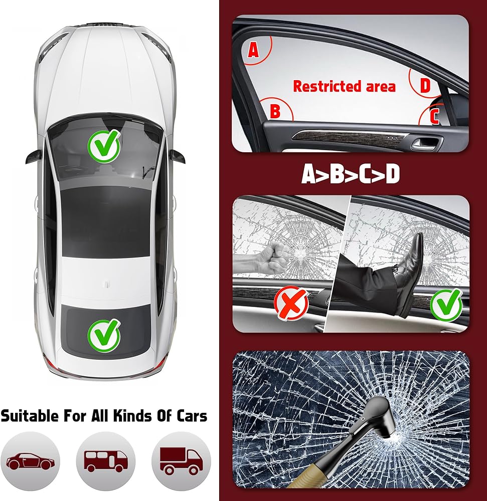 Engineered for safety and peace of mind, this car window breaker tool comes equipped with a tempered window glass breaker Heavy-duty carbon steel hammers and hardened tungsten steel heads allow you to quickly escape from an accident. It easily shatters breakable double laminated glass, making it the ideal emergency accessory for any car.