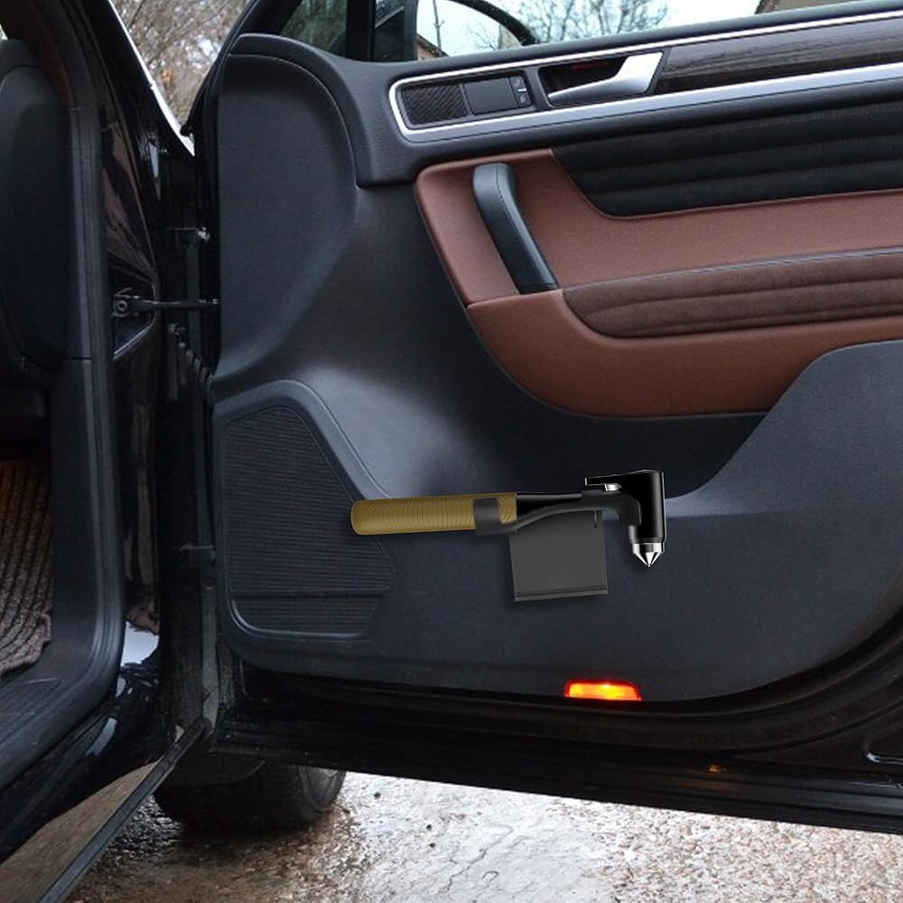 Car Window Breaker - Zinc Alloy Glass Breaker and Seat Belt Cutter - 3-in-1 Emergency Escape Kit with Fireproof All-Metal Design - Essential Car Safety Tool for Emergency Escape,Brown, 1-Pack