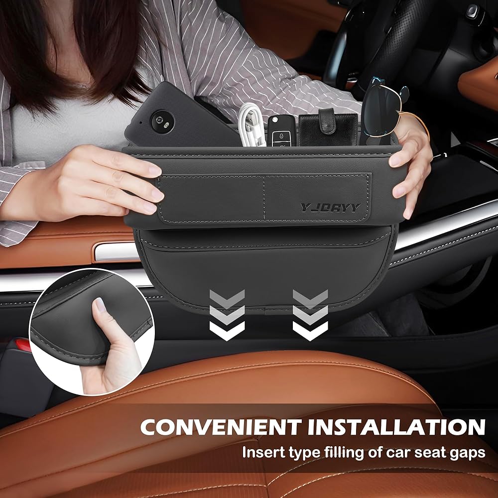 Experience the ultimate organization and convenience with the YJDayy Car Seat Gap Filler. Crafted from premium leather, this Seat Gap fillers adds a touch of elegance to your car while effectively preventing items from getting lost in the gaps. Made with the highest quality materials, our car seat gap filler is gentle on your car seats' leather and suitable for a wide range of car models. Its sleek design seamlessly blends into your car's interior, creating a clutter-free space. No more digging around for your phone, cards, or keys. The YJDayy Car Seat Gap Filler keeps all your essentials within reach. It fits snugly into the seat gaps, ensuring stability even during sudden stops. The internal sponge provides excellent elasticity, securely holding your items in place. We've also considered your charging needs. The left and right sides of the gap filler feature designated spaces for phone and tablet charging cables. Simply thread the cables through, and your devices can be securely stored while charging. At YJDayy, we value your satisfaction. We continuously strive to improve our products based on your feedback. We aim to provide you with a seamless shopping experience. If you have any questions or concerns, please don't hesitate to reach out to our dedicated customer service team. Choose the YJDayy Car Seat Gap Filler for a clean, organized, and stylish car interior. Make your driving experience more enjoyable and stress-free. Upgrade your car today!