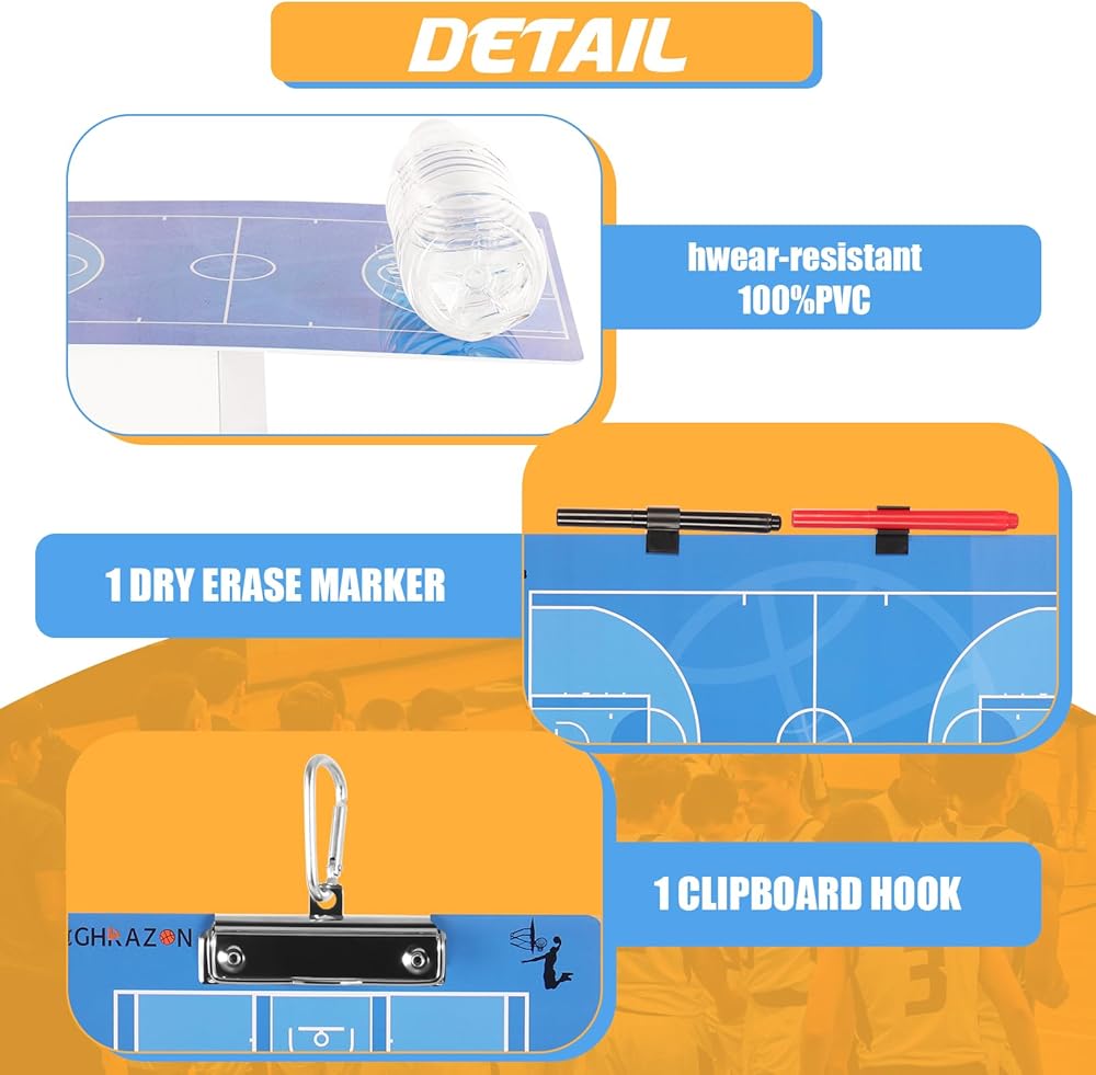 Convenient and efficient: The basketball coach plate produced by 100% of the high quality PVC material, 2.3 mm thickness of the board, compact and lightweight is very convenient carry and frequent use. The smooth surface enables quick erasure and write to improve efficiency when guiding tight training and competition