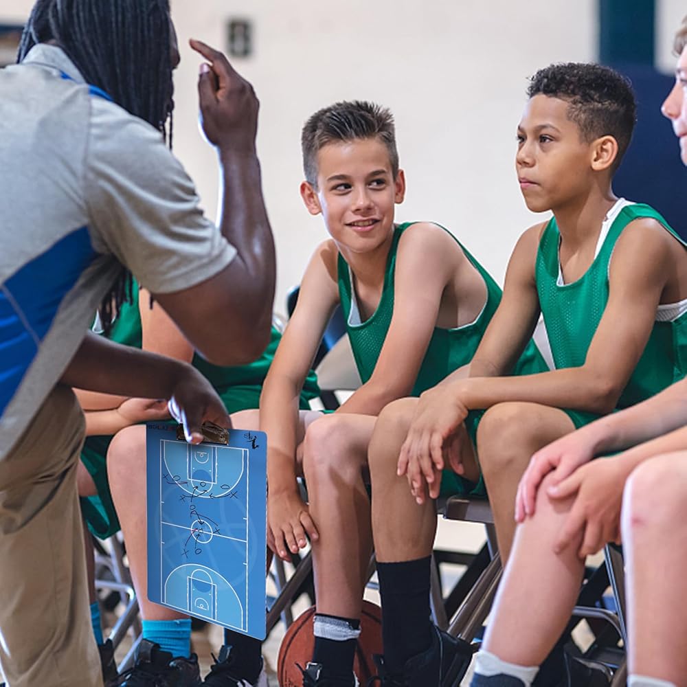 Layout design: Double-sided design, the front is a complete basketball field with clear lines and correct proportions, and the reverse enlarged half court is better for detailed deployment and training optimization. The record area is designed so that you have a dedicated area to record strategic points, special situations, etc