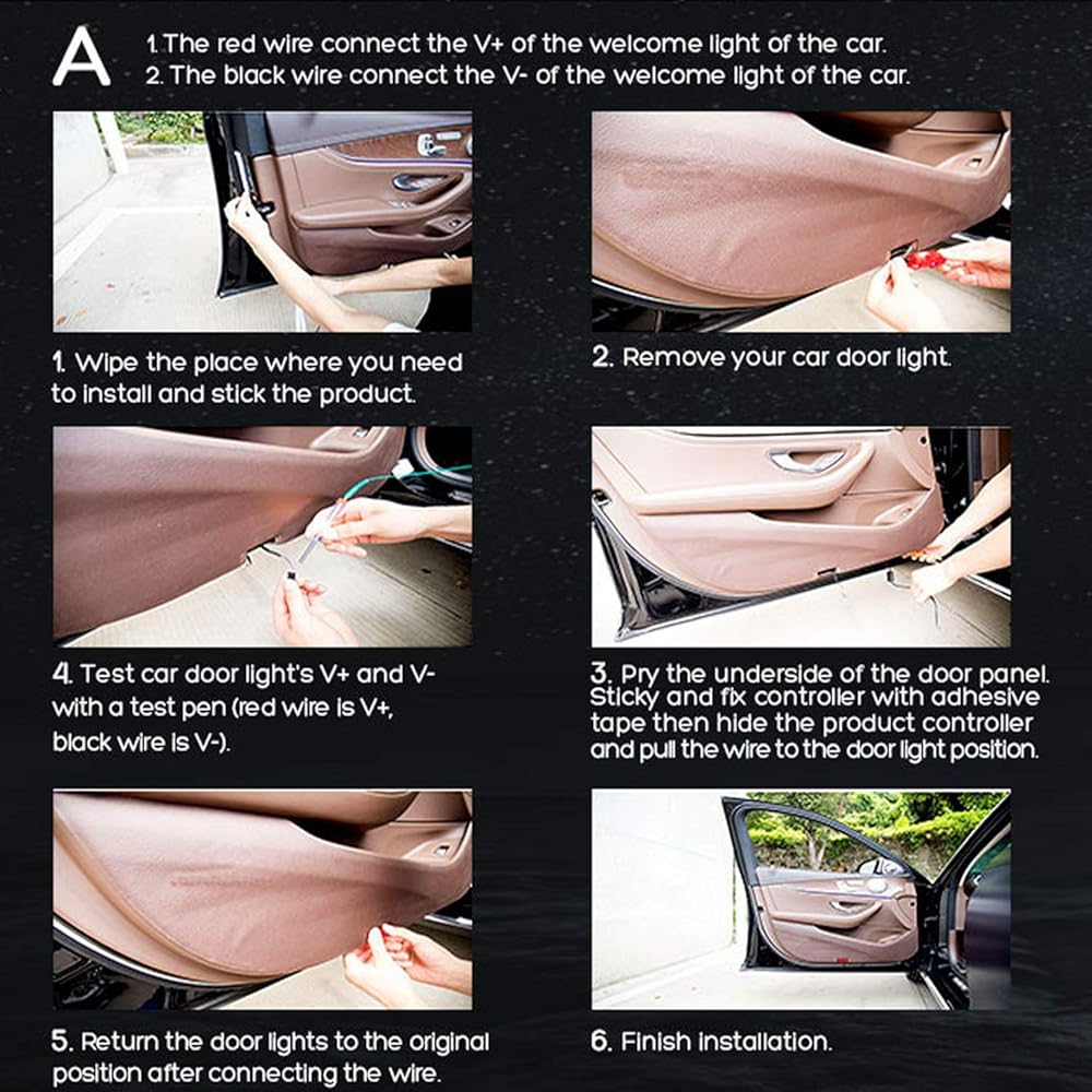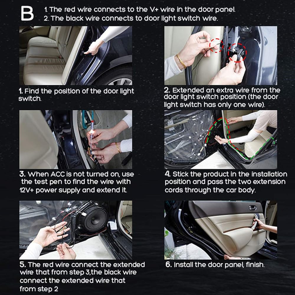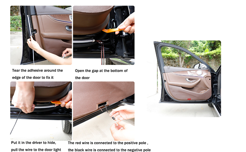 🏆UNIVERSAL DESIGN: Fit for any cars, SUV, truck. do not destroy the original car lines, just paste it in the door and connect the positive and negative power supply to power on