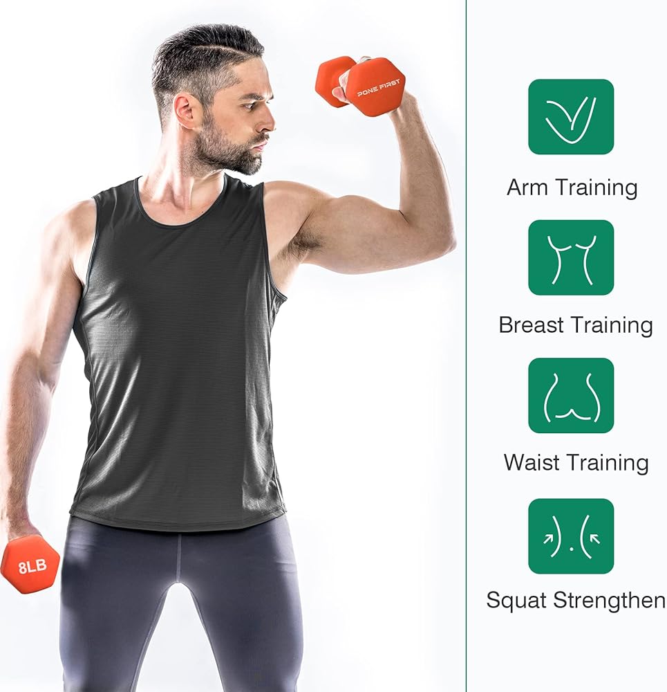 【HEXAGONAL SHAPE】:The hexagonal shape of the dumbbell heads prevents the weights dumbbells set from rolling and is easy for stacking. Especially for at-home workout programs. Printed weight number on each end cap and color-coded for quick identification.