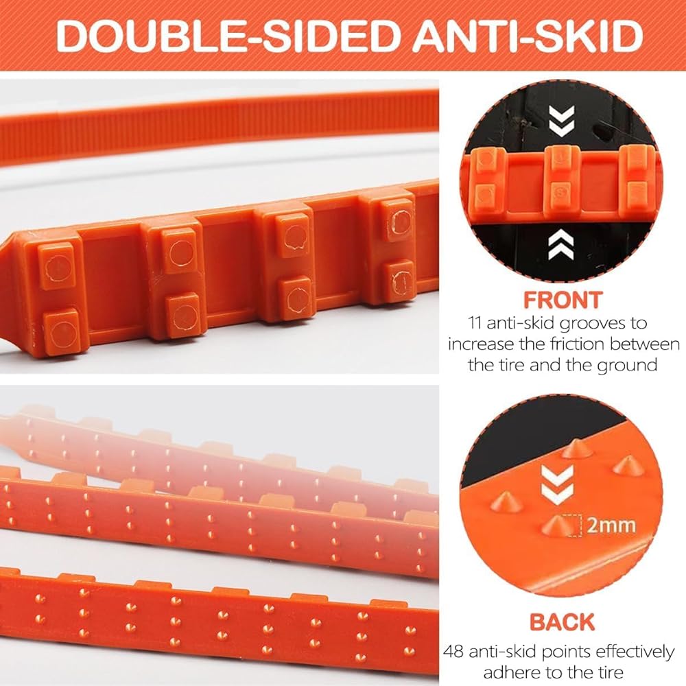 Snow chains for Car/Suvs/Trucks/Pickups with 12PCS Reusable Snow Tire Chains Universal Car Tire Chains Emergency Anti Slip Adjustable Tire Chain for Snow, Rain, Sand, Mud