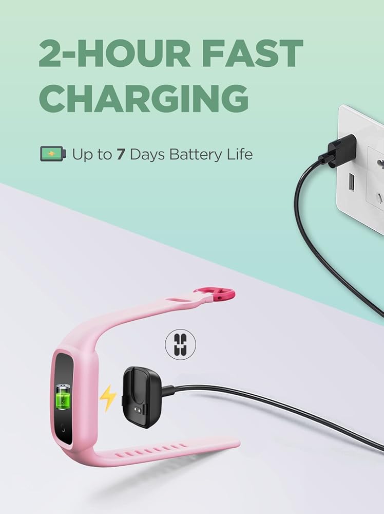 [MORE COMFORTABLE & DURABLE] The softer and skin-friendly liquid silicone strap is specially designed for children ages 5-12, for a more comfortable fit;Newly upgraded charging interface, safer and more durable, up to 7 days of battery life with 2 hours of fast charging.