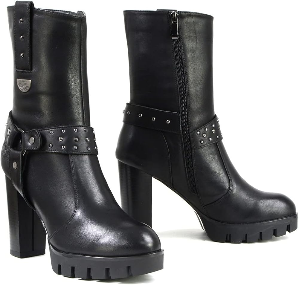 Milwaukee Leather MBL9303 Women's Black Leather Harness Boots with Block Heel