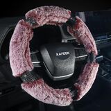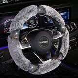 KAFEEK Diamond Fluffy Microfiber Plush Steering Wheel Cover with Bling Bling Crystal Rhinestones for Winter Warm, Universal 15 inch Fuzzy Steering Wheel Cover,Gray